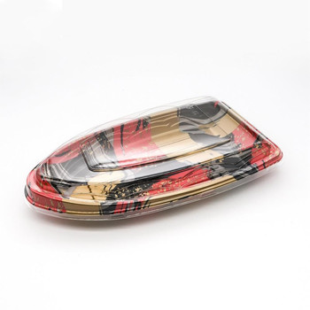 โรงงานจีนที่มีสีสันทิ้งพลาสติก PS วัสดุเรือรูปร่างซูชิกล่องบรรจุภัณฑ์